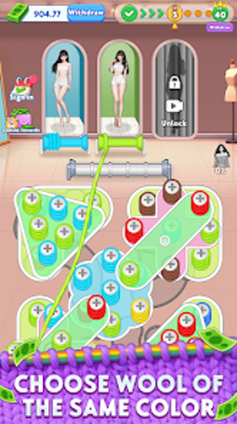 A mecânica do jogo é centrada na coleta e combinação de cores, permitindo que os jogadores desbloqueiem modelos e personalizem suas criações. A interação com o jogo é suave, oferecendo um feedback realista a cada combinação bem-sucedida, proporcionando uma experiência de alívio do estresse. Chic Screw Match é uma jornada imersiva que transforma a tecelagem em uma forma de arte, onde cada toque traz uma nova vida às cores.